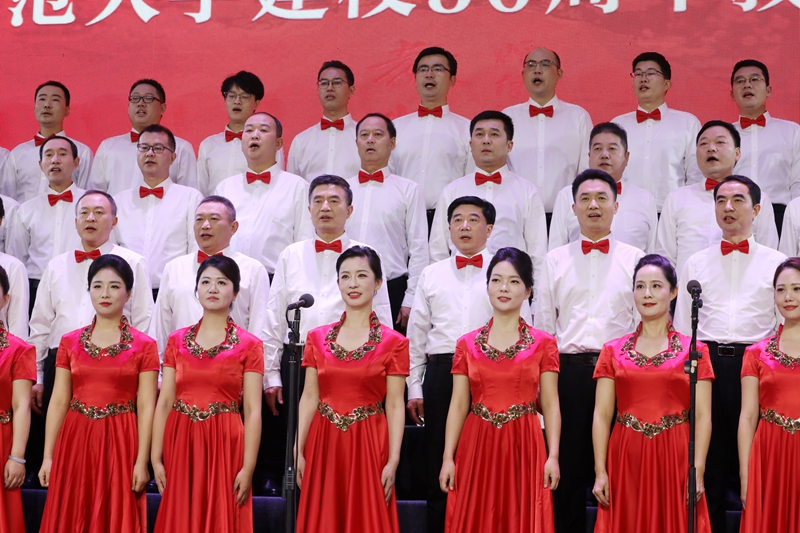 合唱团由机关二分工会所属的18个部门教职工组成。自9月中旬组建以来,在校领导高度重视、各部门大力支持、机关二分工会精心组织下,合唱团全体成员正确处理工作与训练的关系,刻苦训练、反复打磨,精益求精、追求卓越,以饱满的精神状态为校庆献礼。