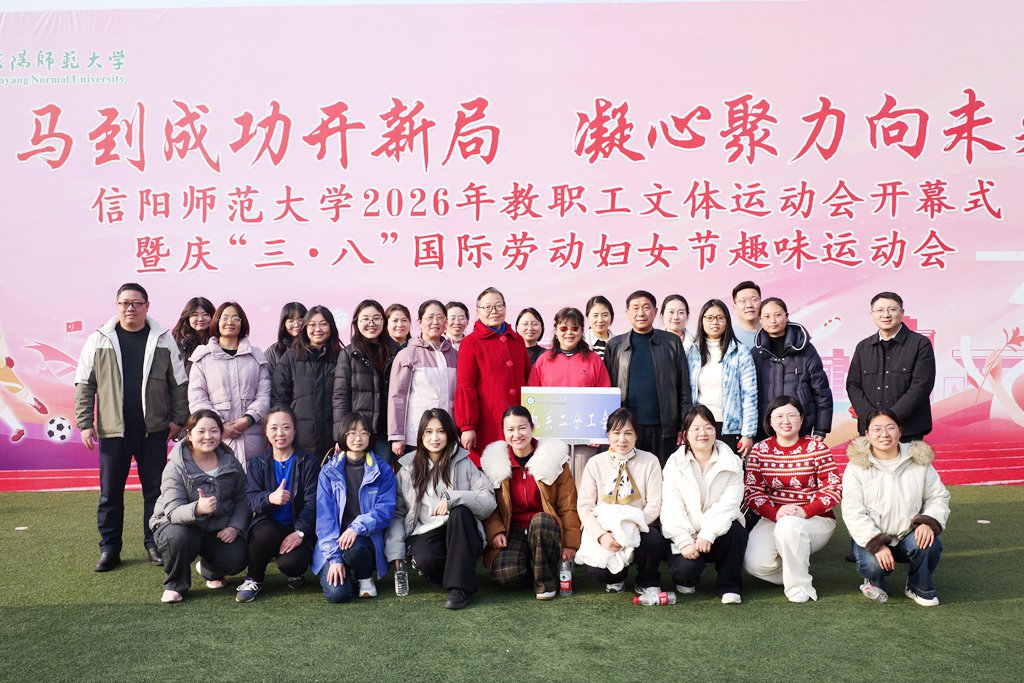 3月5日,惠风和畅,校工会在西田径场举行2026年教职工文体运动会开幕式暨庆“三八”国际劳动妇女节趣味运动会。相关职能部门、各学院、各分工会负责人以及31个分工会代表队的近600名教职工参加。机关二分工会30余名教职工参加趣味运动会。